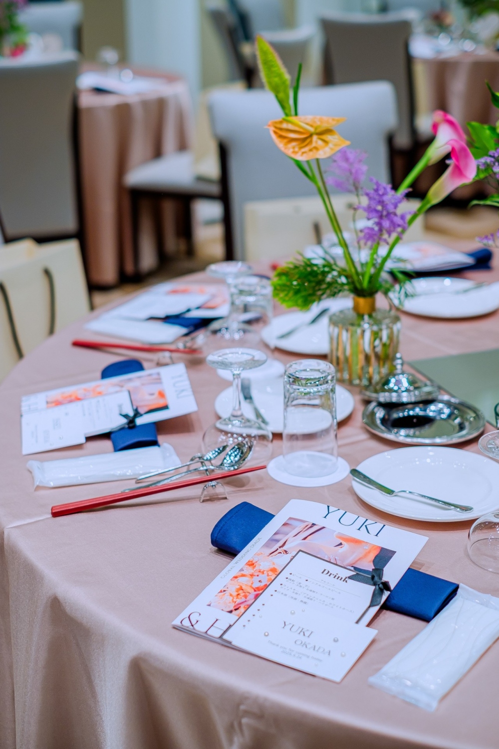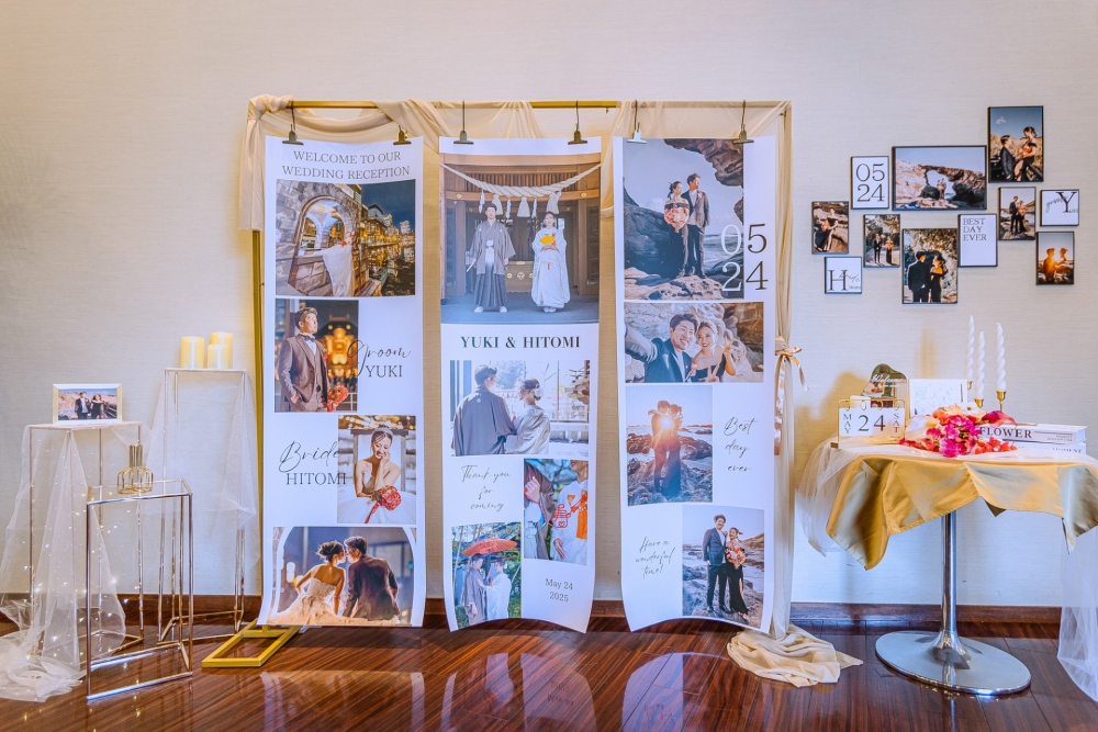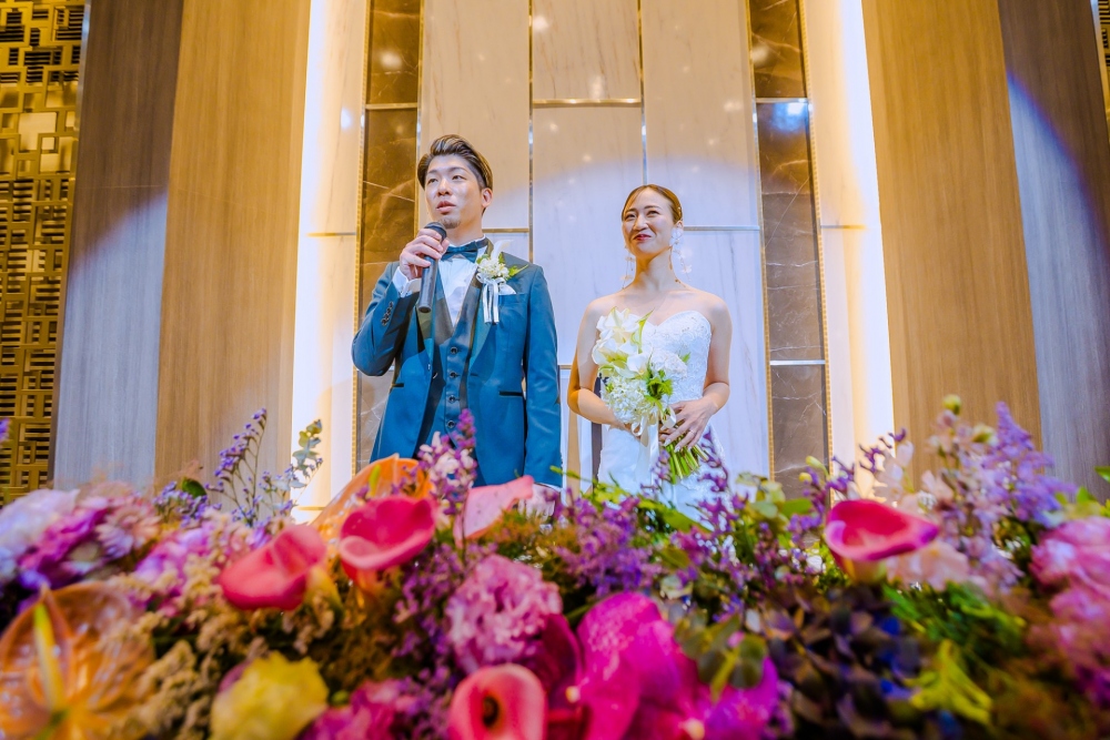 打合せを重ねおふたりを「知る」時間が、私にとってとても貴重でキラキラした思い出です。口数少なめなYukiさんからの言葉には、表現とは裏腹なゲスト様への誠実さを感じ、Hitomiさんからはゲスト様を楽ませるのはもちろん、ご自身も楽しみたい!という想いを感じておりました。またHitomiさんとはお1人で打合せにお越しいただく事もあり、共感・尊敬するお話しもたくさんさせていただきました。「もう1回やりたい‼︎」というお言葉は涙が出るくらい嬉しかったです!またお会いするのを楽しみにしています!